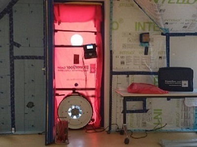 沃科致力於提供最優質的被動式房屋設計與諮詢服務,因應認證被動房項目需求,增加氣密檢測服務,採用先進的檢測設備,並由德國專業氣密檢測中心受訓,測量方式依照EN13829規定,根據被動式房屋標準:鼓風機風門測試期間,在負壓或正壓 50 Pa 下,換氣率不得超過 0.6 每小時。